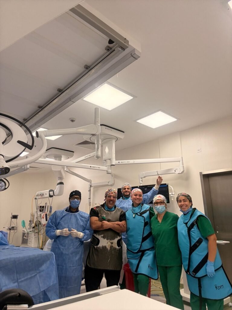 Estos avances son posibles gracias al trabajo coordinado de nuestro equipo de Hemodinamia, integrado por el Dr. Alejandro Martorina, el Dr. Hugo Pollini, el Dr. Juan Manuel Fernández Cambra y el Dr. Francisco Canllo. También destacamos la labor fundamental del equipo de instrumentadores quirúrgicos, de Enfermería y de los Licenciados en Bioimágenes, cuya participación es clave en cada intervención.